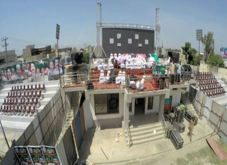 A large number of PTI workers have gathered in the city to attend the procession for which all necessary arrangements have been made. Stage and chairs have been set in Khatukhel ground with party flags decorated all around the venue. Banners welcoming the people have also been placed at frequent places. Elders along with children are arriving at the venue and are much excited.