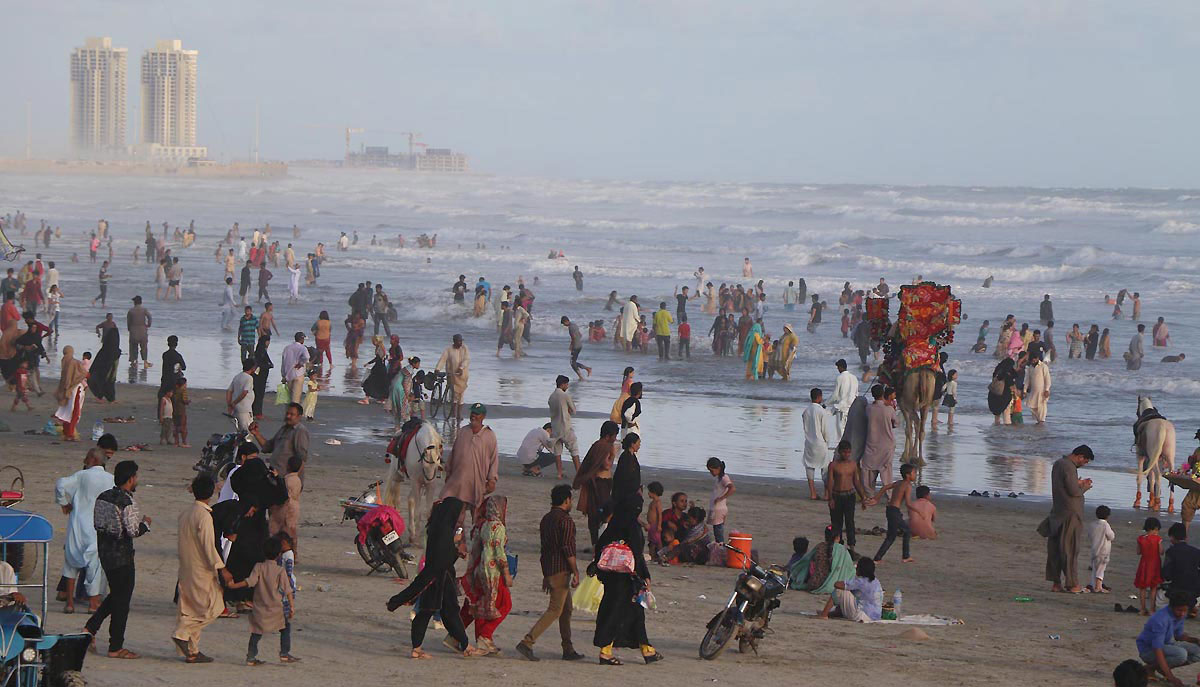 Families enjoy at Clifton beach in Karachi. --- Online Photo