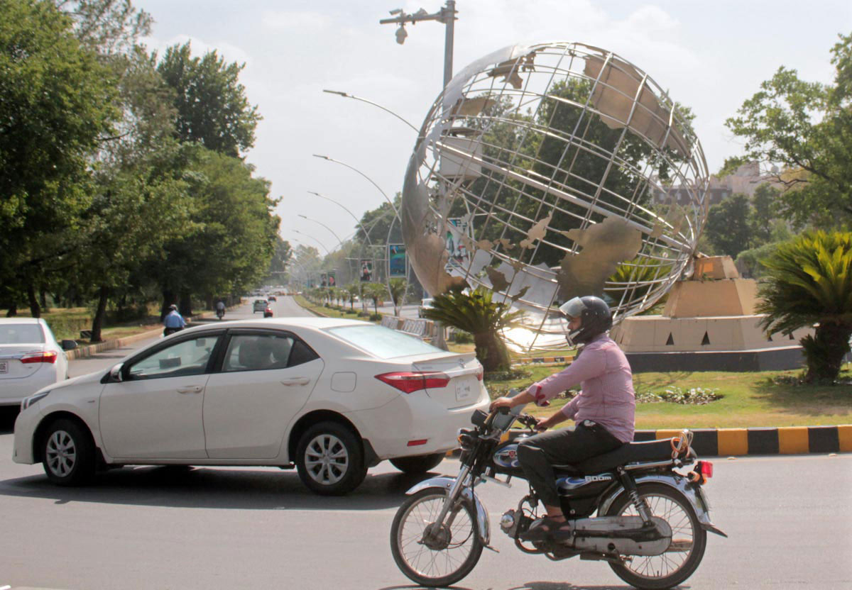 Rotating Globe in Constitution Avenue falls after windstorm in Islamabad. --- Online Photo