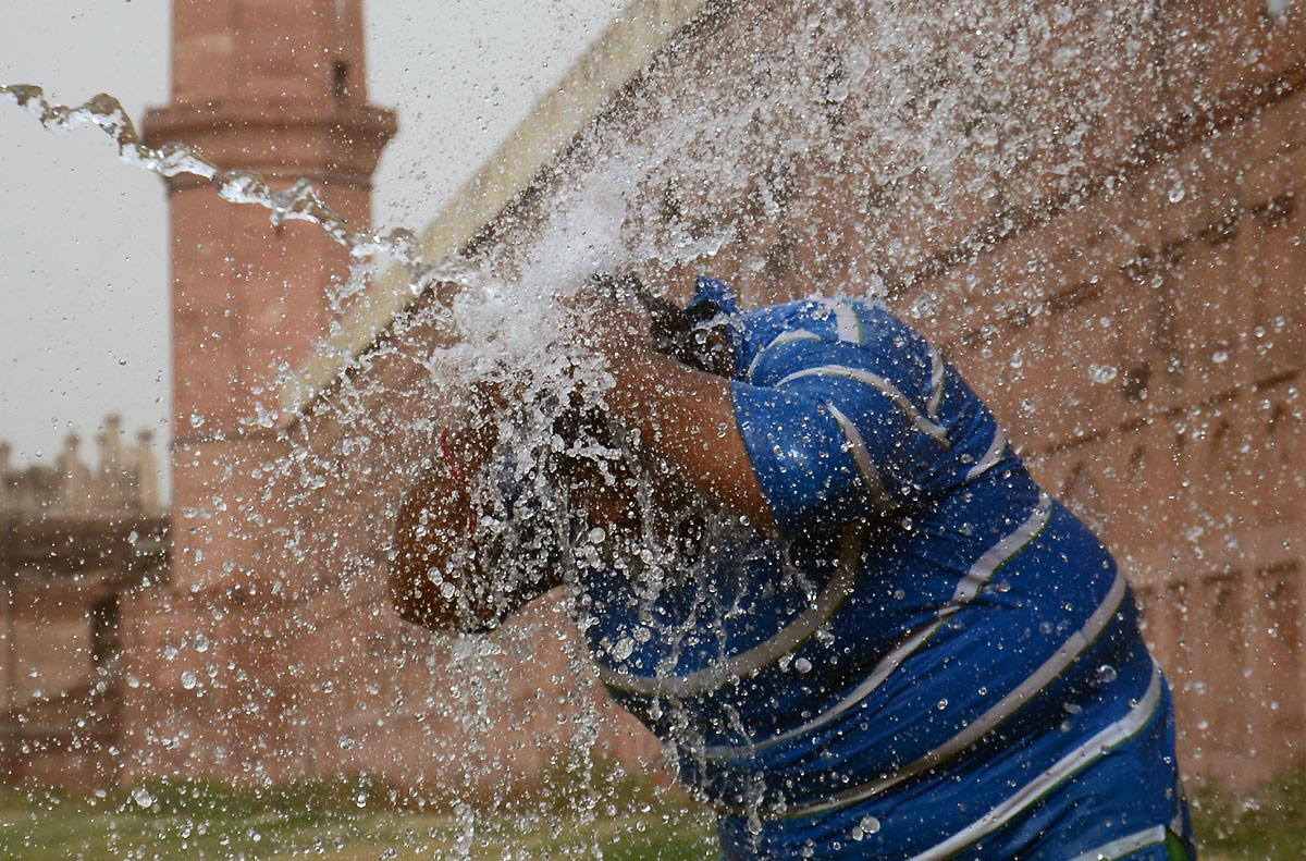 A man washes himself at back of Badshahi mosque in Lahore. --- Online Photo