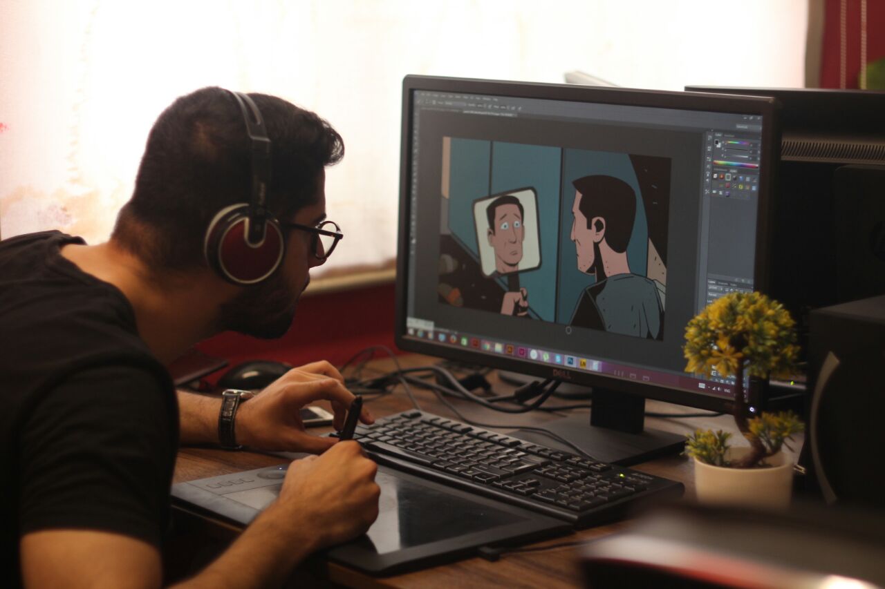 Yahya Ehsan, Creative Director and Co Founder CFx Comics, working on illustrations for the videos
