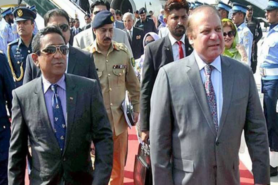 (Web Desk) - Prime Minister Nawaz Sharif has arrived in Maldives on a three-day official visit.