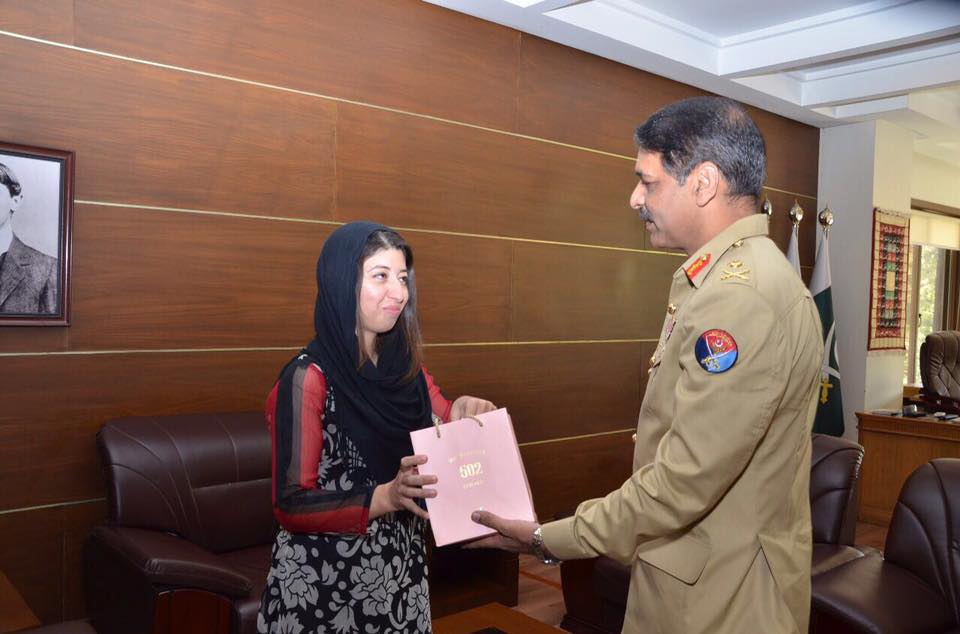 The cyclist from Lower Dir of Malakand called on the ISPR executive at the General Headquarters and apprised him about her efforts to promote culture of sports amongst the youth especially girls and create awareness about climate change.