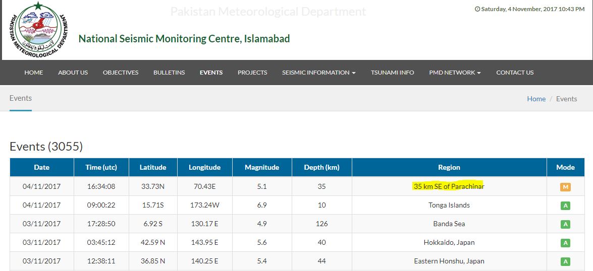 It was told that the source of this earthquake is mountain ranges of Parachinar.