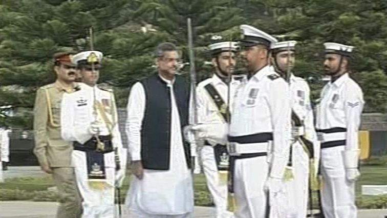 On arrival, the PM was received by Naval Chief Zafar Mehmood Abbasi. A smartly turned-out contingent of Pakistan Navy band played the national anthem.