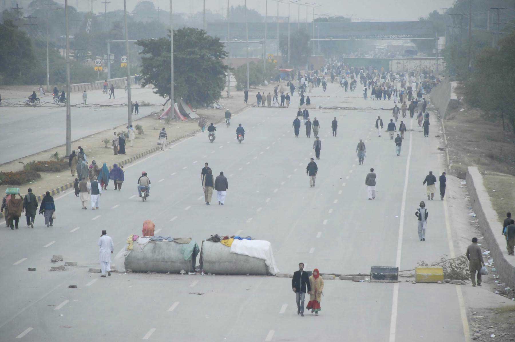Roughly 2,000 protesters from the Tehreek-i-Labaik Ya Rasool Allah Pakistan group have blocked the main highway used by thousands of commuters since November 6, causing hours-long traffic snarls.