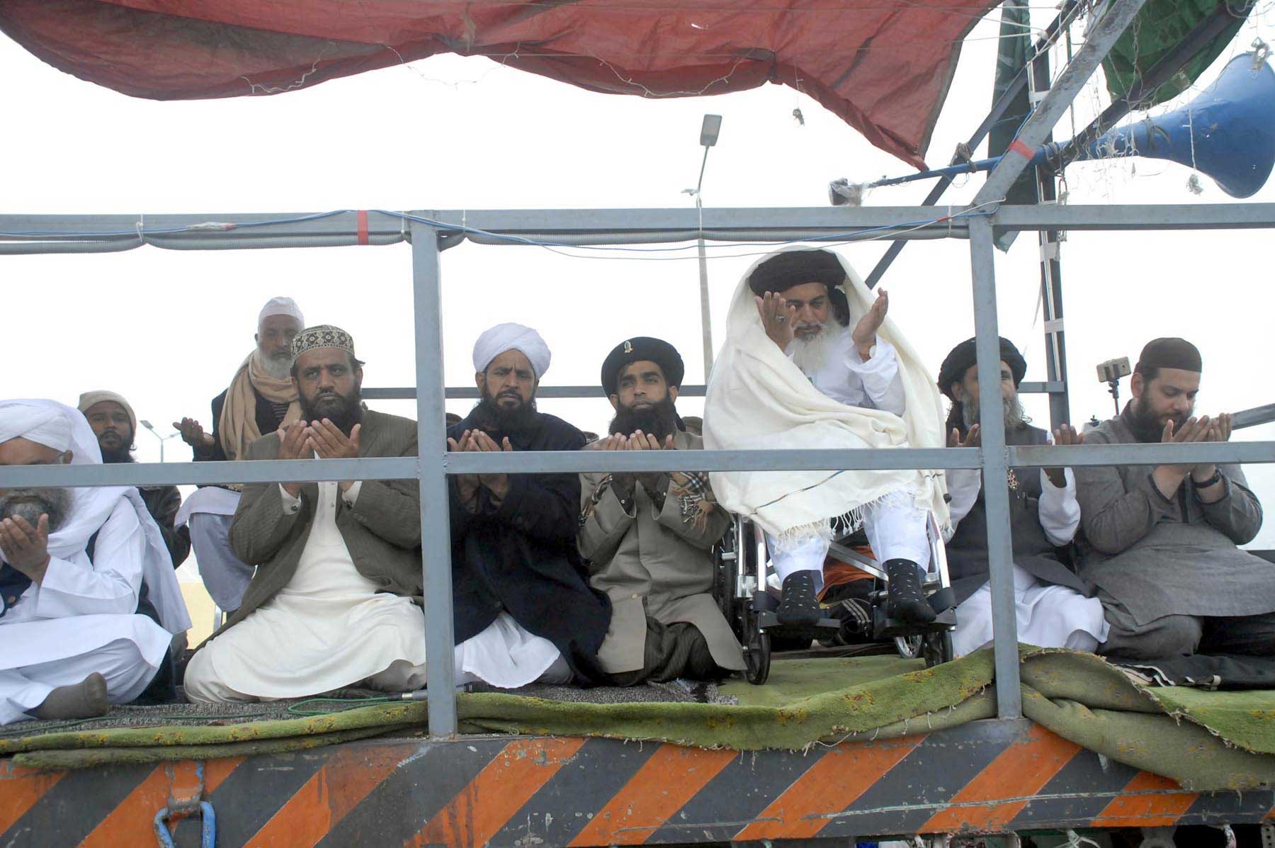 The protesters are demanding the resignation of federal law minister Zahid Hamid over a hastily-abandoned amendment to the oath election candidates must swear. The government puts the issue down to a clerical error.