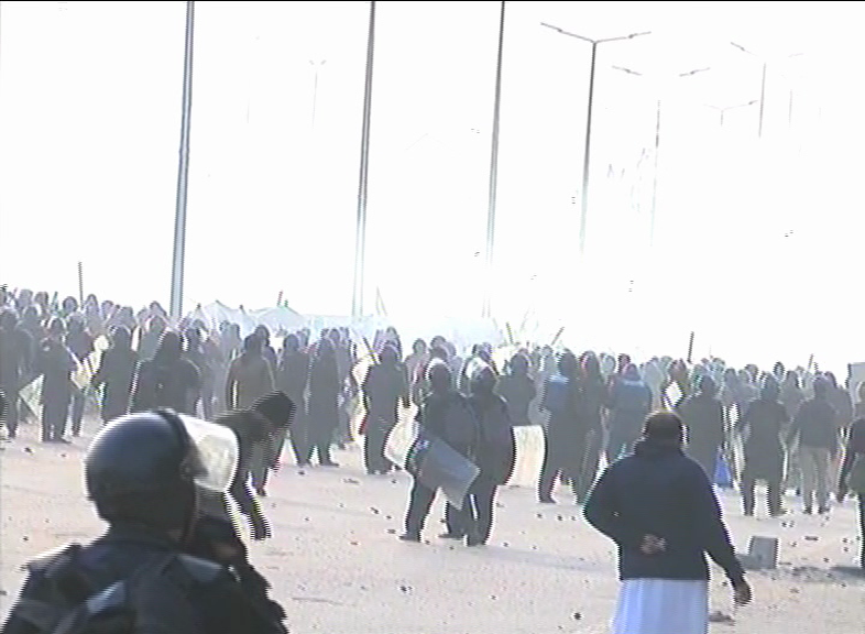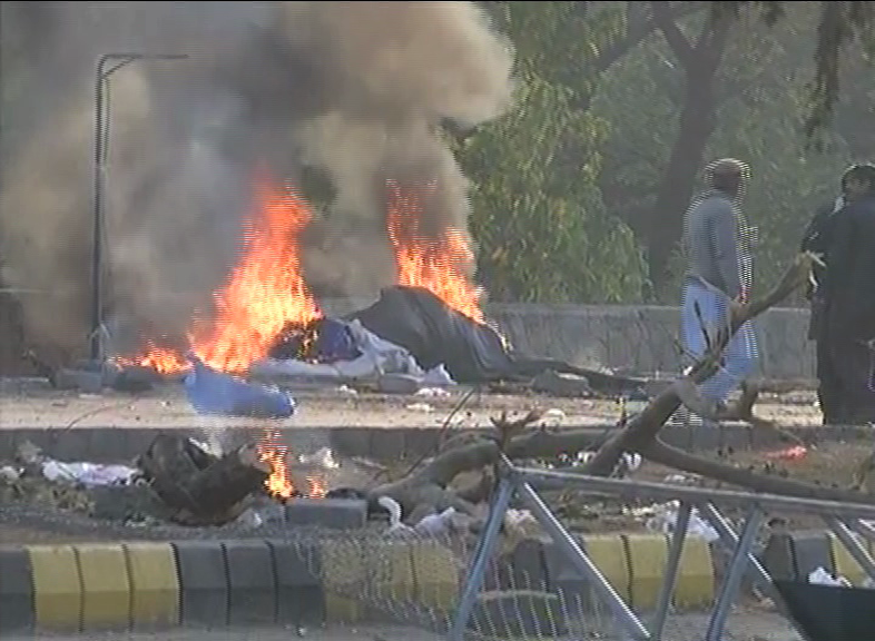 The operation was carried out after police personnel repeatedly directed the protesters to call-off their sit-in. The officers resorted to teargas and rubber bullets firing over which the workers of religious parties hurled stones at them.