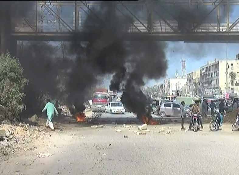 Train service has also been suspended due to the protests. The Pakistan express traveling from Cantt station was stopped at Drug road due to ongoing protests on railway track near Malir.