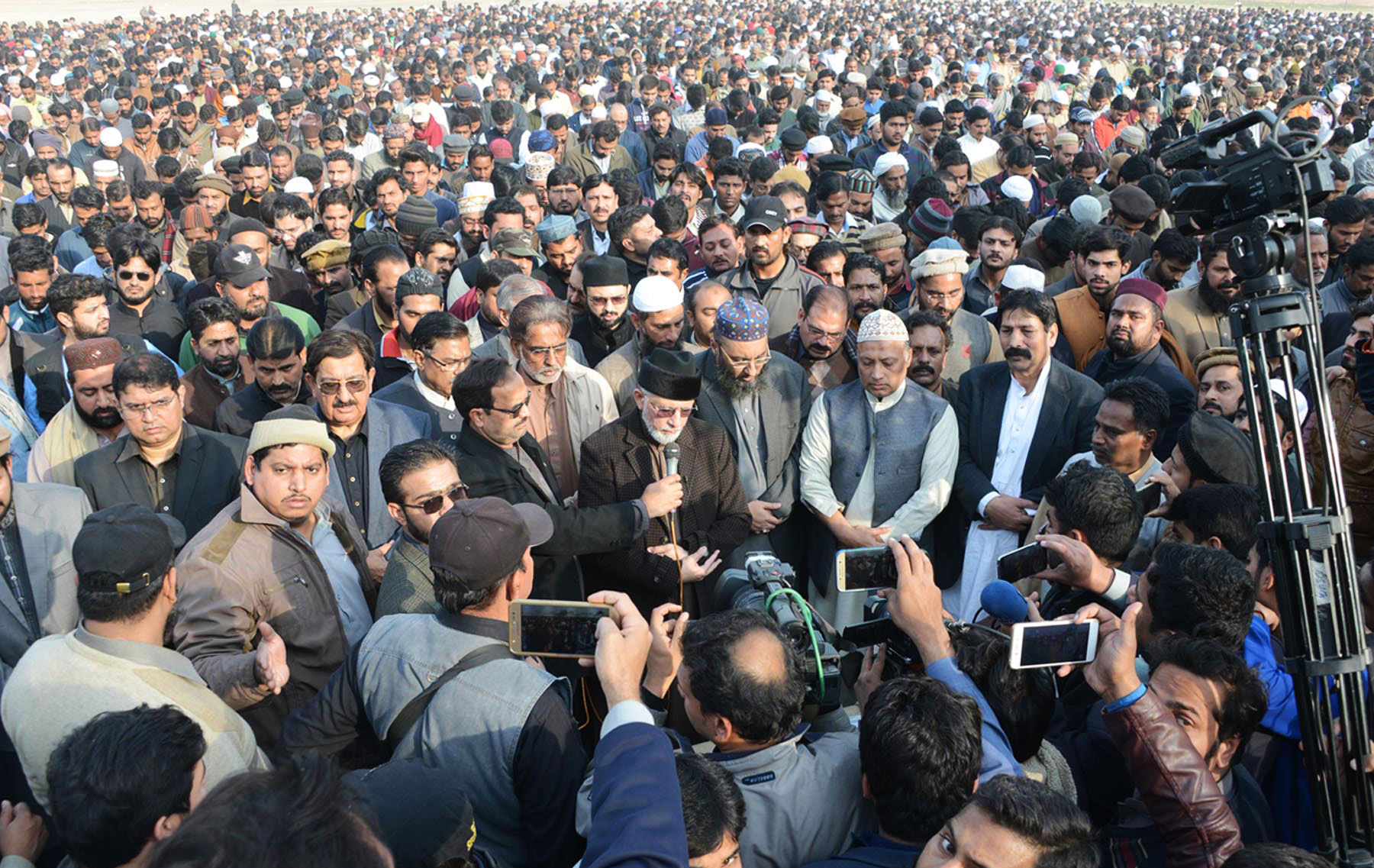 Pakistan Awami Tehreek chairman Dr. Tahir-ul-Qadri leads the funeral prayers of the minor in Kasur. Photo: OINN