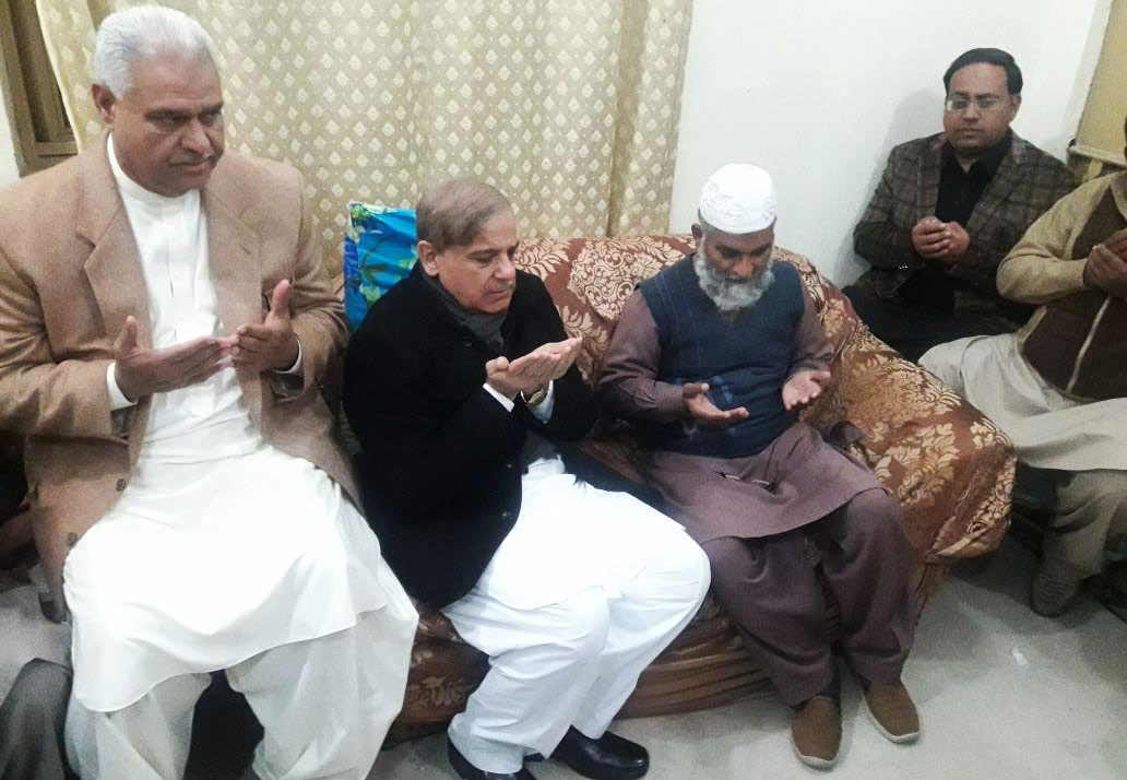 CM Punjab offers Fateha during his visit to the house of the minor girl killed in Kasur. Photo: OINN