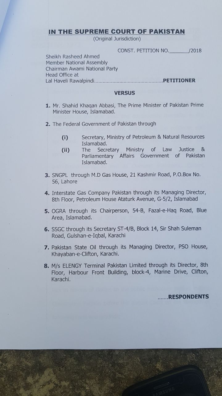 Copies of the petition filed with the top court today by AML chief Sheikh Rasheed