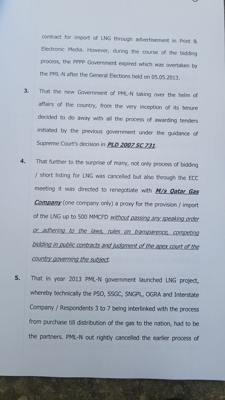 The petition alleges the government of having ignored directions of the top court in Liquefied Natural Gas (LNG) agreement that cost Pakistan billions of dollars.