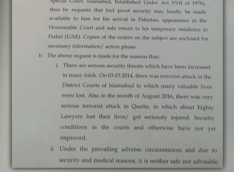 Sources reported that the Ministry of Interior and Ministry of Defence received formal requests from Musharraf on March 13 seeking provision of security. General (r) Musharraf had flown out of Pakistan earlier citing medical treatment.