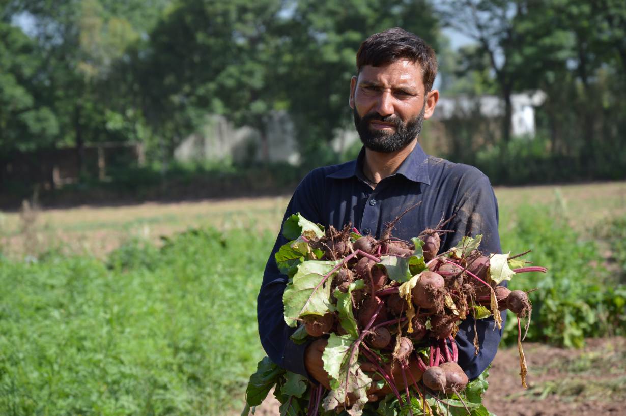 "I am scarcely able to recover the expenditures with such low yields," Khan said, clutching a handful of freshly harvested beets.