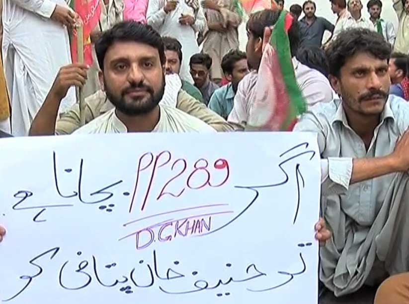 Protesters are demanding to award ticket of DG Khan's PP-289 constituency to Hanif Pitafi.