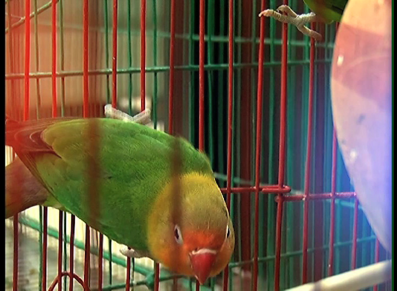 Multi-colored parrots at the residence of Tota Pahelwan are a source of peoples attention.