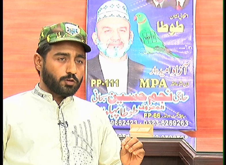 (WebDesk/DunyaNews) - As the general elections 2018 are on the air, contestants have intensified their election campaigns all around the country. Among them one is Najam ul Hassan known as Tota Pahelwan who will be contesting as an independent candidate from PP 111. Captivatingly Election Commission of Pakistan (ECP) has allotted him the same bird as his electoral symbol which he has been nurturing in a big number for many years.