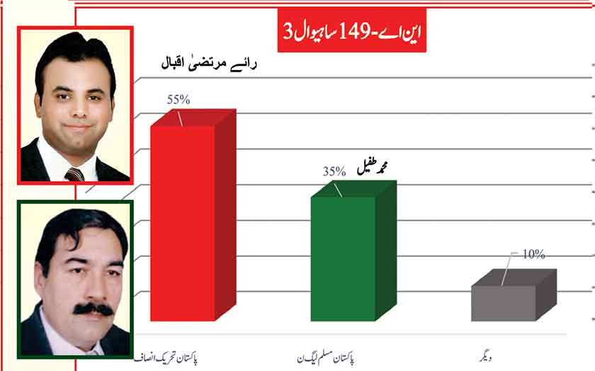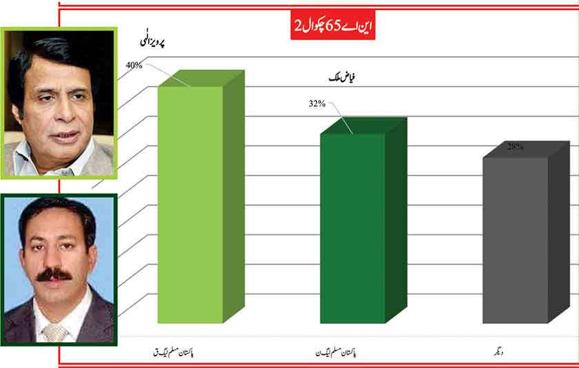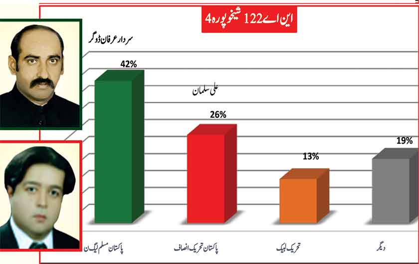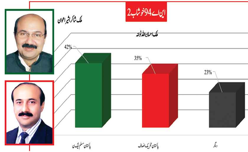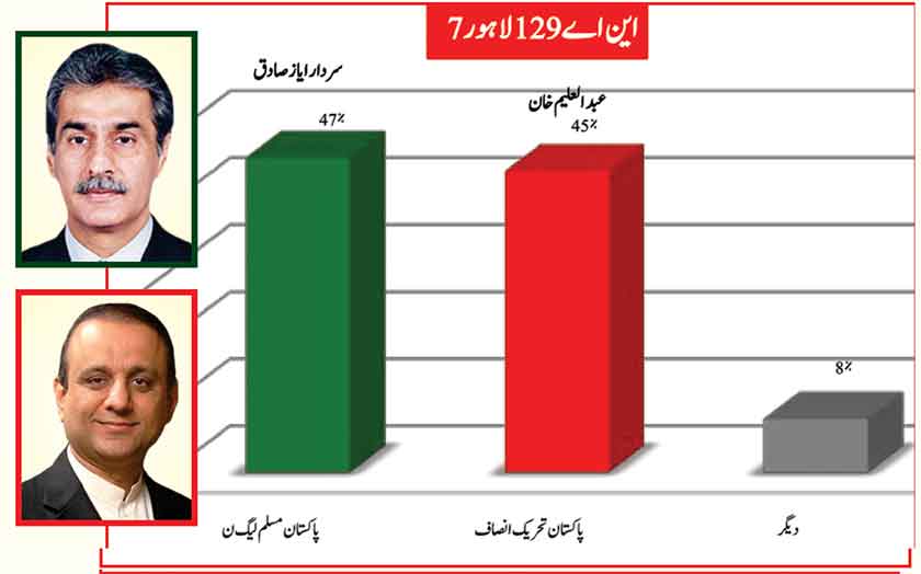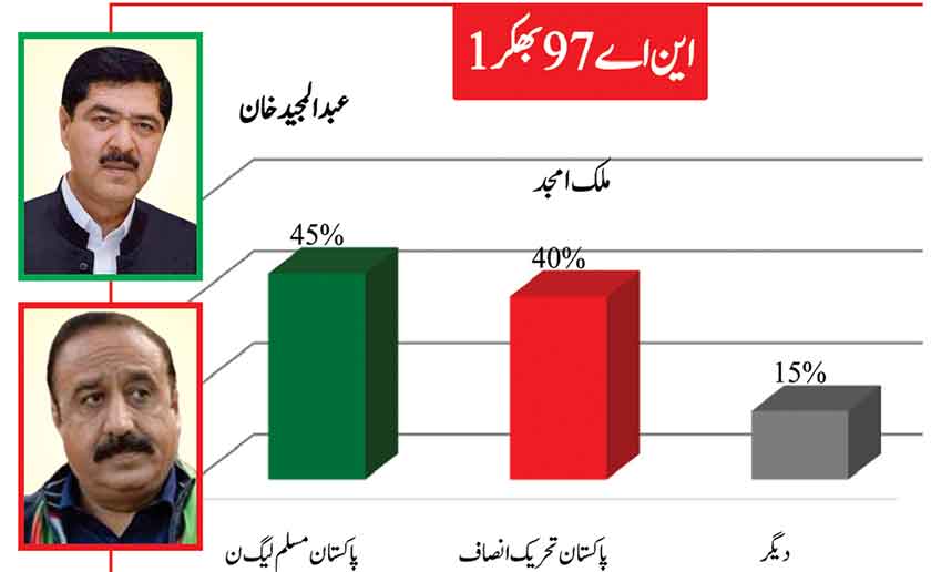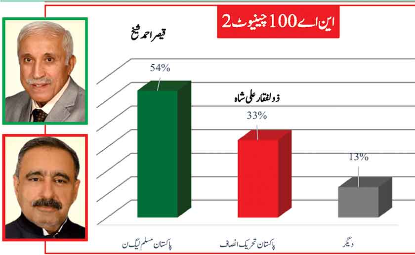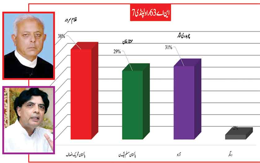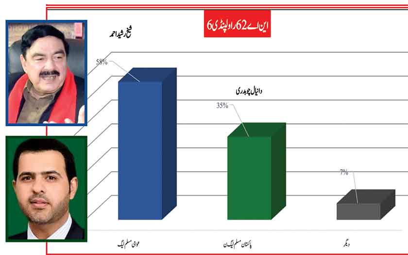 Awami Muslim League’s Sheikh Rasheed dominates the home ground with 53% mass support followed by PMLN with 35% and others with 7%.