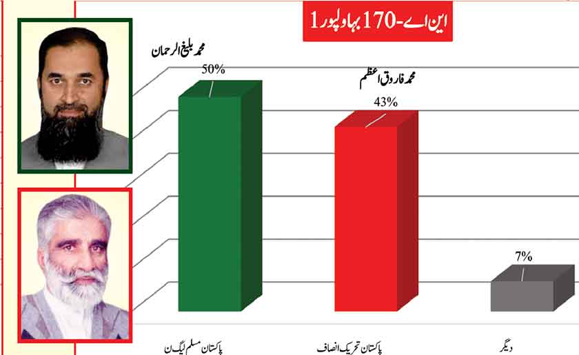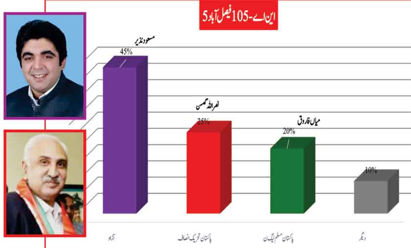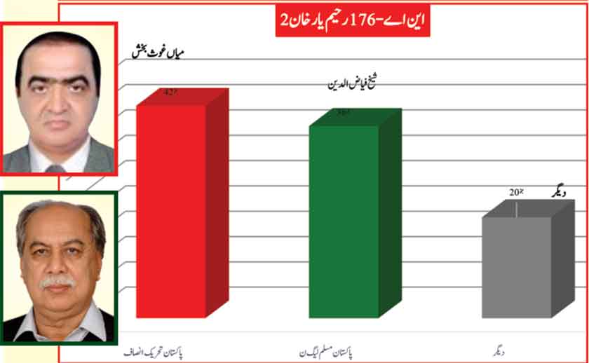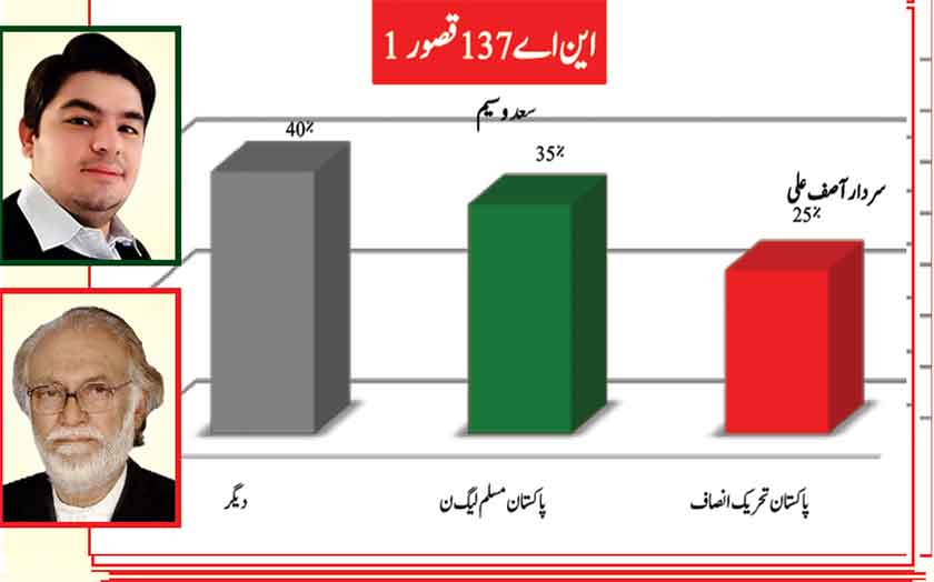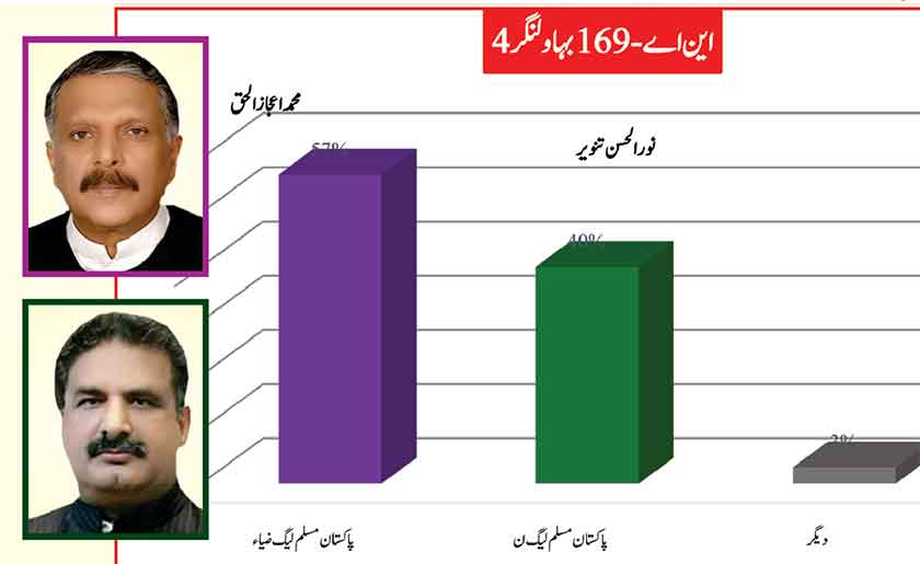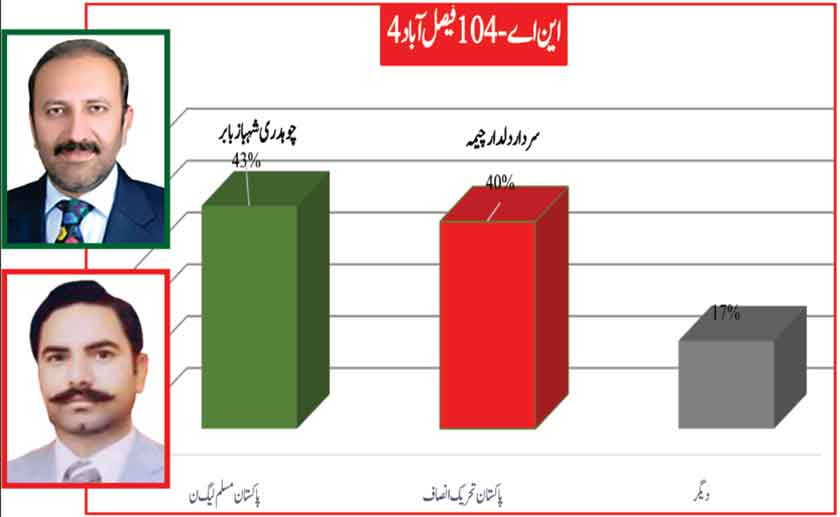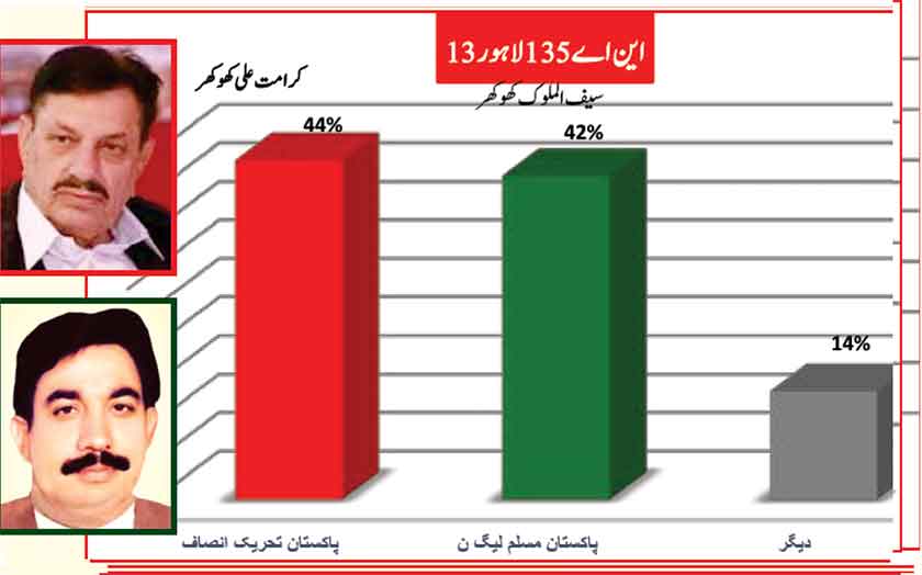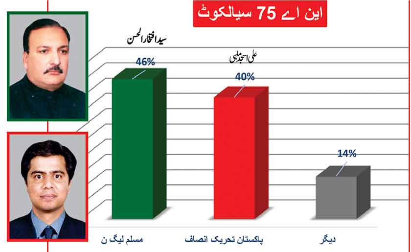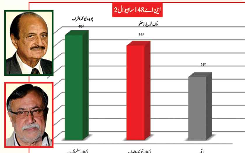 Awami Muslim League’s Sheikh Rasheed dominates the home ground with 53% mass support followed by PMLN with 35% and others with 7%.