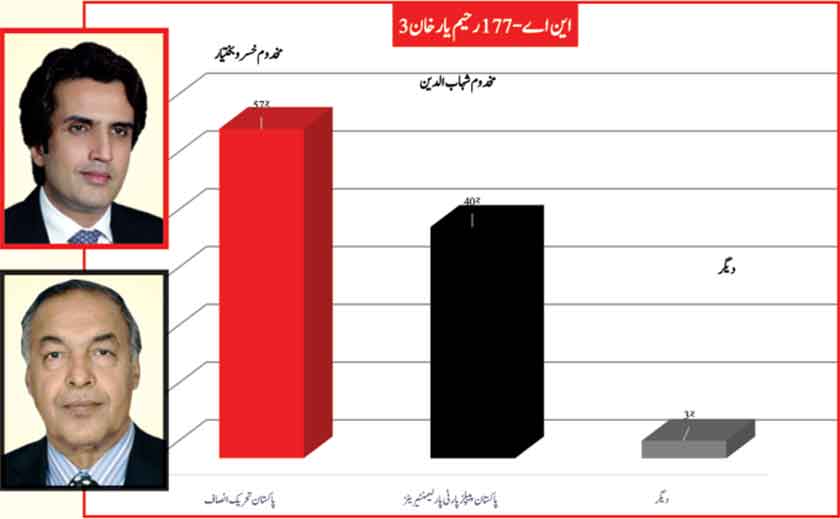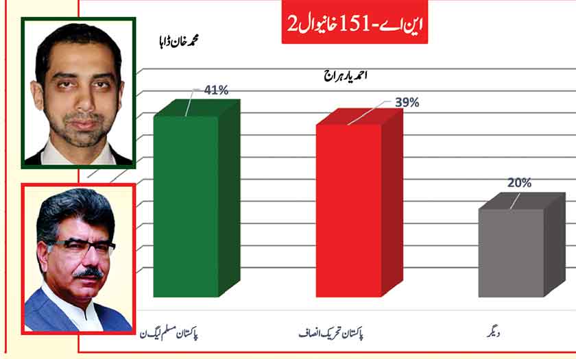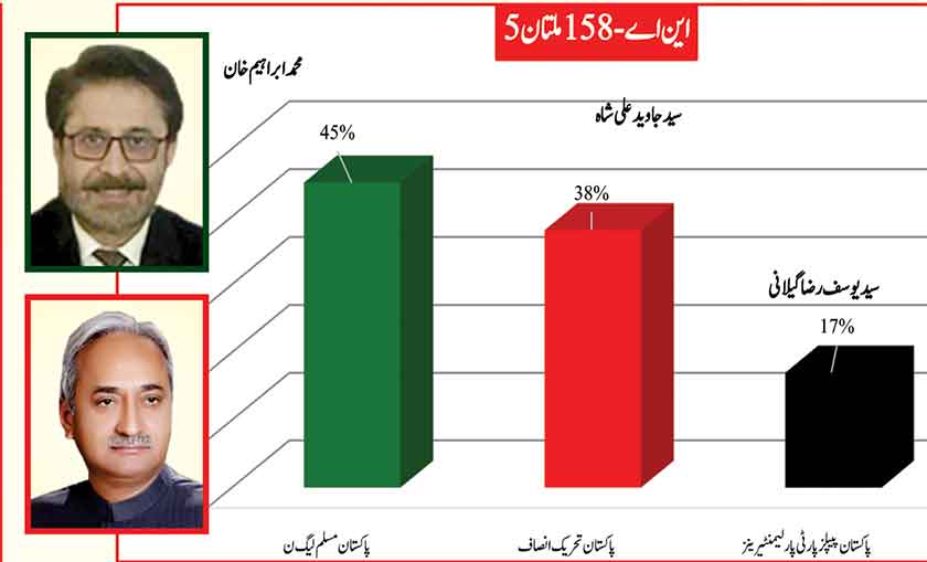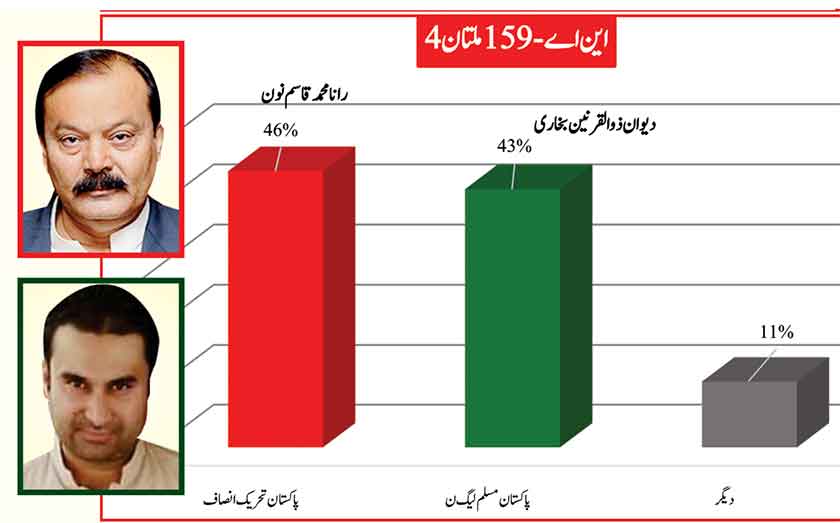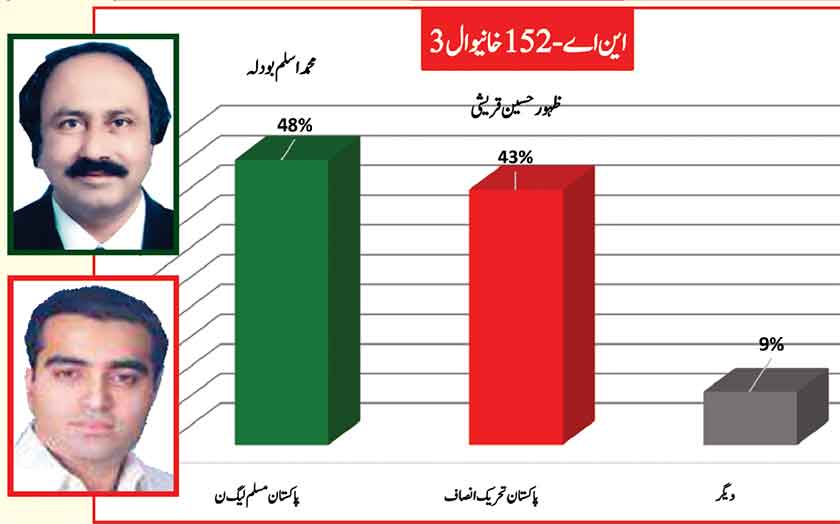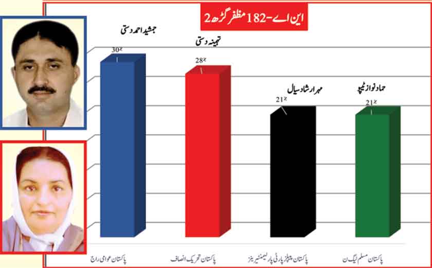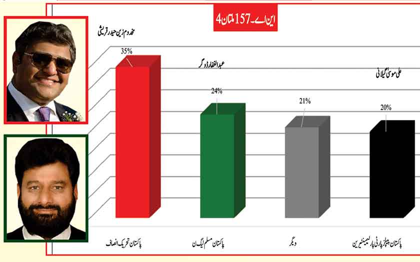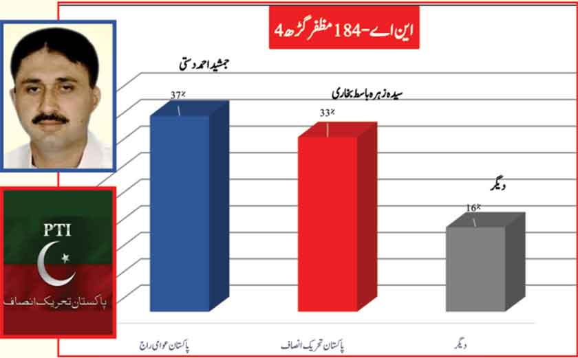 Jamshed Dasti leads the constituency with 2% greater support