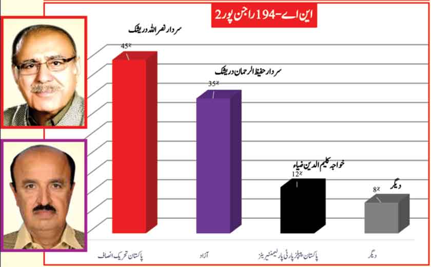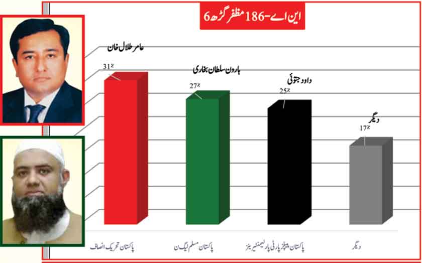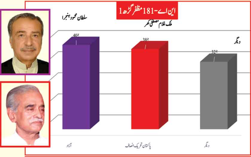 Independant candidate Sultan Mehmood faces a close battle with Ghulam Mustafa Khar of PTI
