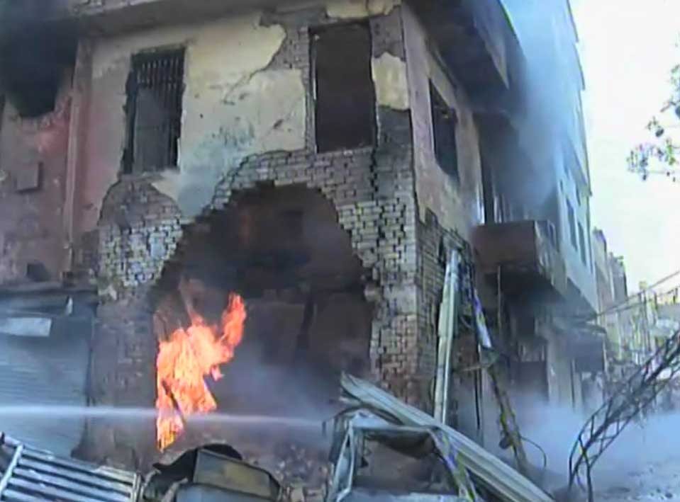 According to rescue officials, the fire erupted after a blast occurred in the illegal Liquefied Petroleum Gas (LPG) shop due to gas leakage.