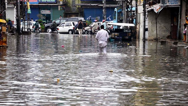 RAWALPINDI: A view of flooded road in Kohati Bazaar rafter heavy rainfall. Intermittent downpours inundated low-lying areas of Rawalpindi overnight, as authorities declared ‘rain emergency’ in Rawalpindi late Monday.