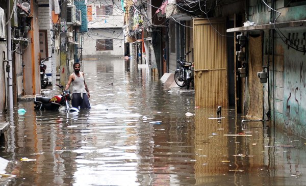 RAWALPINDI: A view of flooded street of Feroz Pura rafter heavy rainfall.