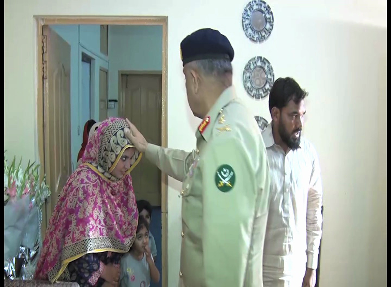 RAWALPINDI (Dunya News) – Chief of Army Staff General Qamar Javed Bajwa and his spouse visited family of martyred police sub-inspector Abbas in Rawalpindi on Thursday.