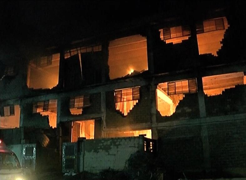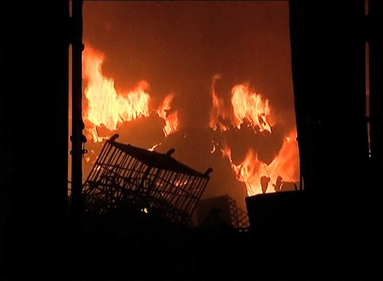 At least 10 nine fire tendersand one snorkel were taking part in extinguishing the blaze. Despite the efforts, fire was not put out and it intensified as plastic and other kinds of inflammable materials were there in the factories. Firefighters are yet to take control of the situation.