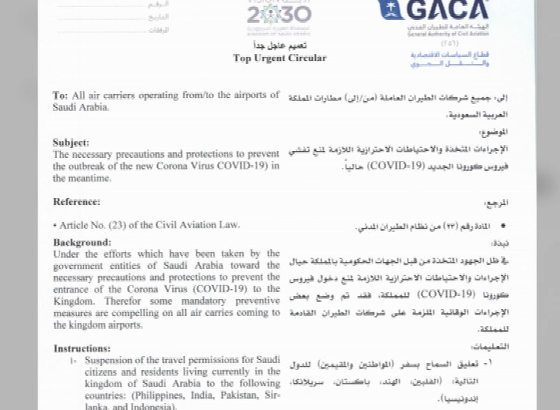 In the notification, GACA has also mentioned the imposition of temporary travel bans on European Union countries and Switzerland.
