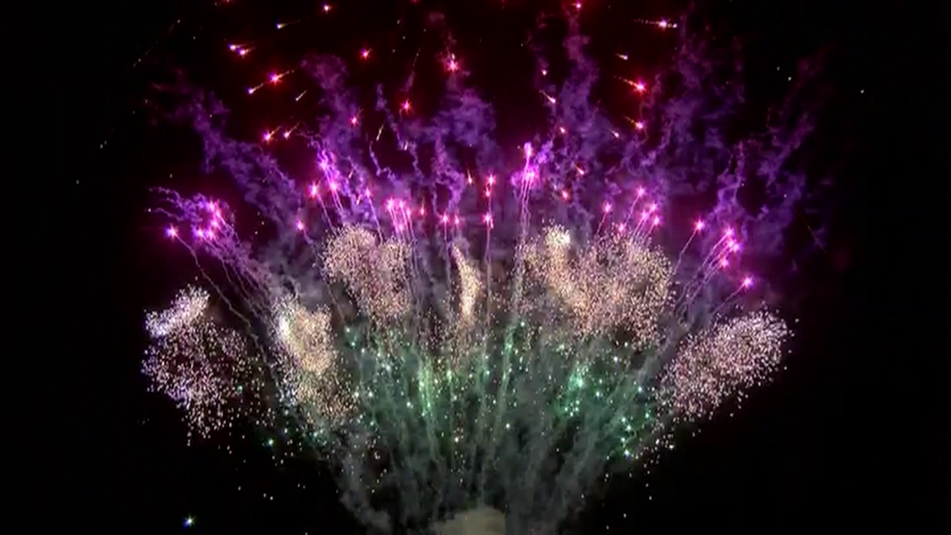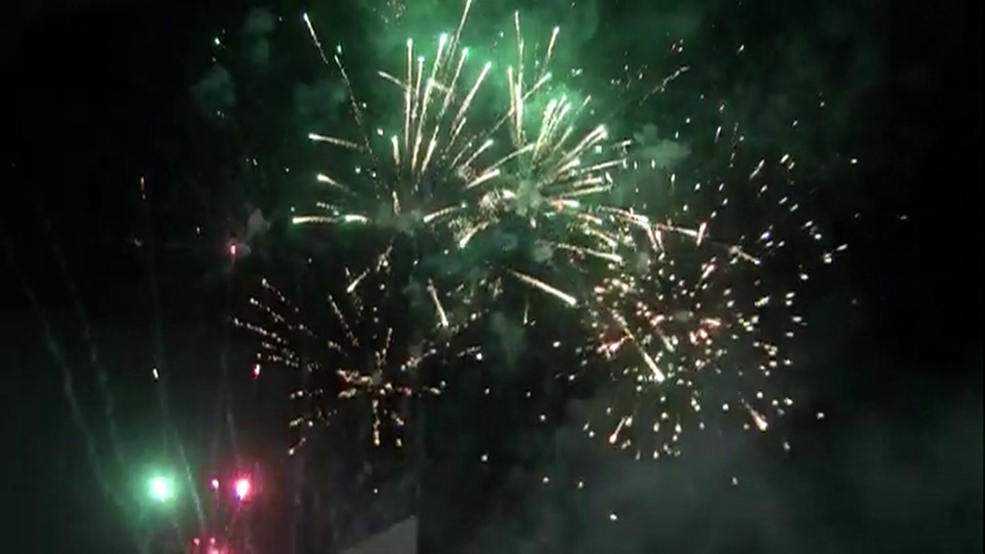 Thousands of people turned out at the Minar-e-Pakistan in Lahore to watch a grand firework display celebrating Independence Day. The sky lit with colorful lighting due to the fireworks display.