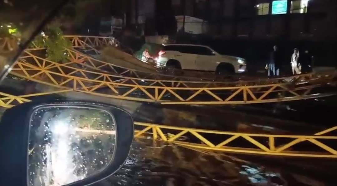 Strong winds also uprooted trees in different areas of the city. Near the Clifton Driving License Branch, a tree fell due to strong winds, injuring at least two people.