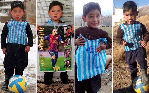 Some of the images of Murtaza Ahmadi wearing Messi shirt made of plastic bag