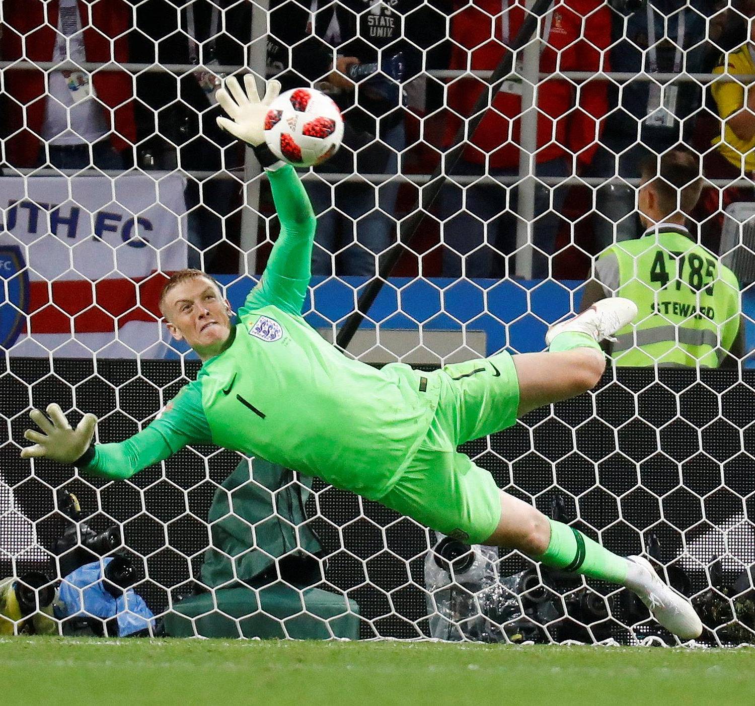 In a close match that featured some great moments, Jordan Pickford stood out as the star player. Not only because he produced one of the saves of the tournament, when he denied Mateus Uribe from long range in the 90th minute of the match, but his penalty shootout heroics meant that the 24-year-old helped his side into the last eight of the tournament.