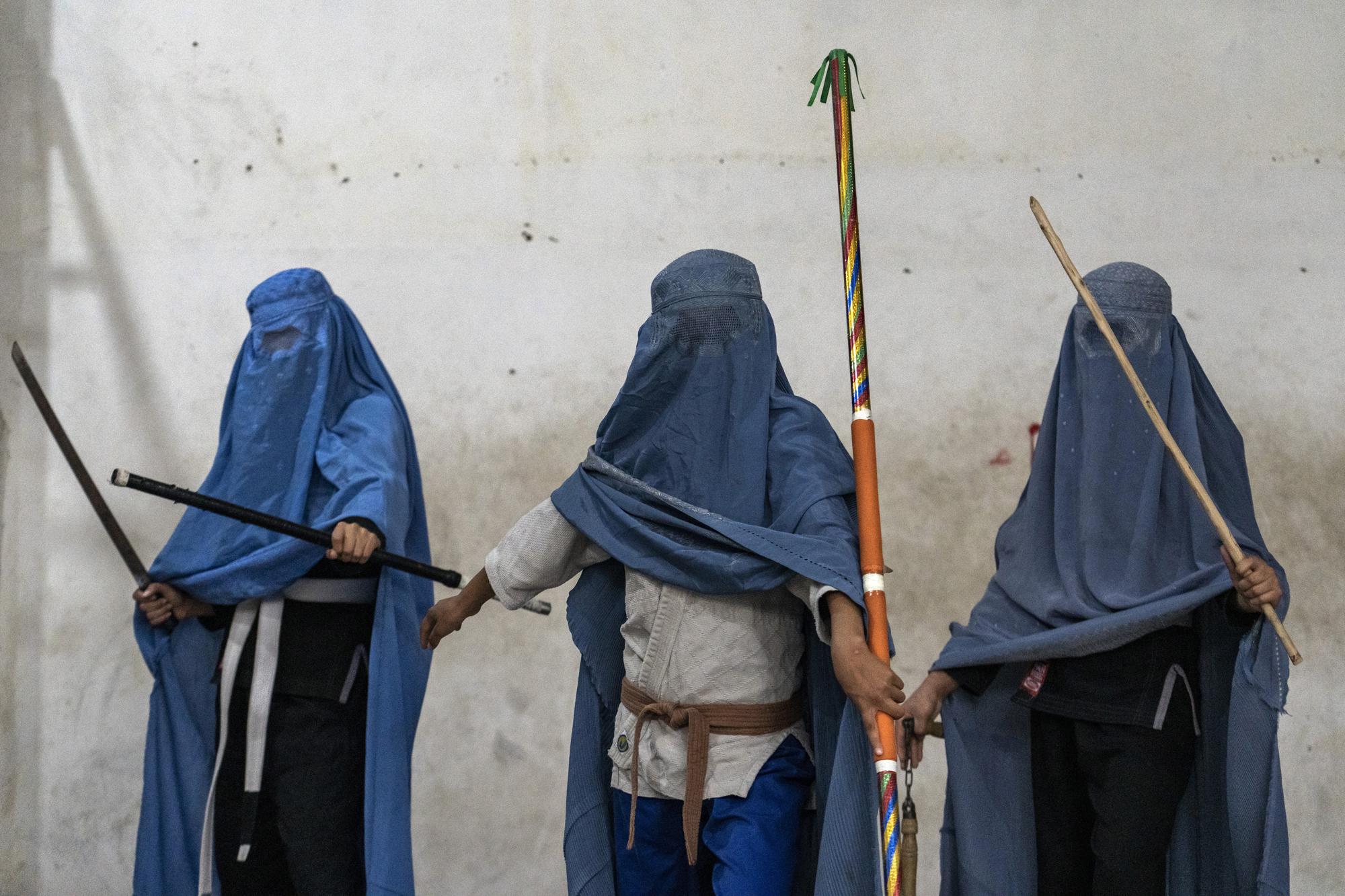 They posed for an AP photographer for portraits with the equipment of the sports they loved. They hid their identities with burqas, the all-encompassing robes and hood that completely cover the face, leaving only a mesh to see through. They didn’t normally wear the burqa, but they said they sometimes do now when they go outside and want to remain anonymous and avoid harassment.