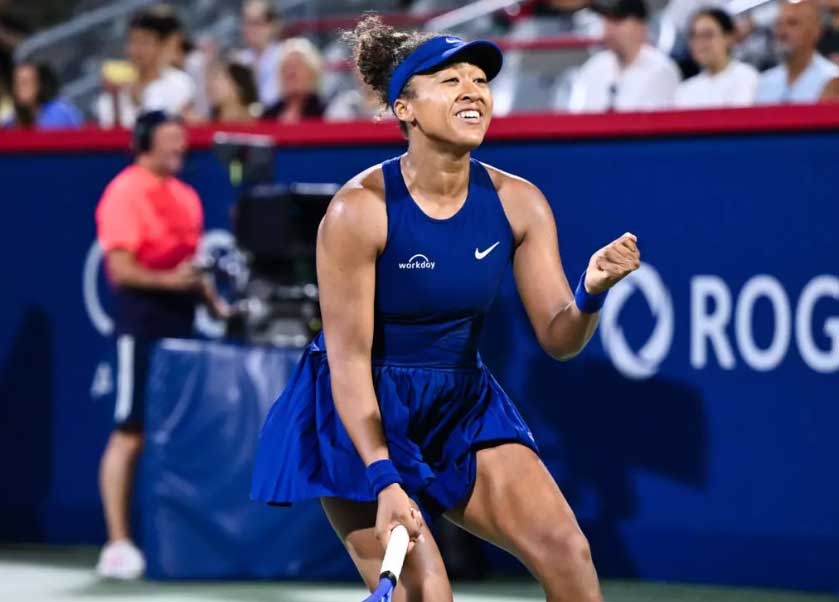 Japan's Naomi Osaka celebrates a victory against Clara Tauson of Denmark in the semi-finals of the WTA Canadian Open in Montreal.