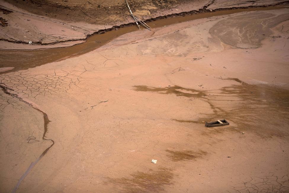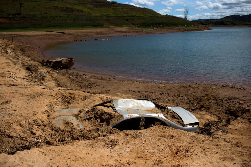 Cars, that the police suspect were stolen and dumped in the lake behind the Jaguari dam, appear on dry ground as the lake dries up due to a prolonged drought in Braganca Paulista, Sao Paulo state - Reuters