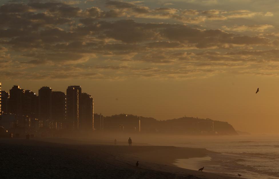 A man walks in Barra da Tijuca beach during the sunrise in Rio de Janeiro - Reuters