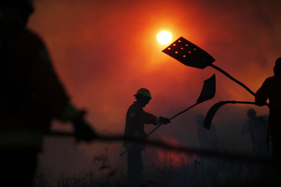 Fire-fighters work to extinguish wildfires near the Sobradinho neighborhood in Brasilia - Reuters