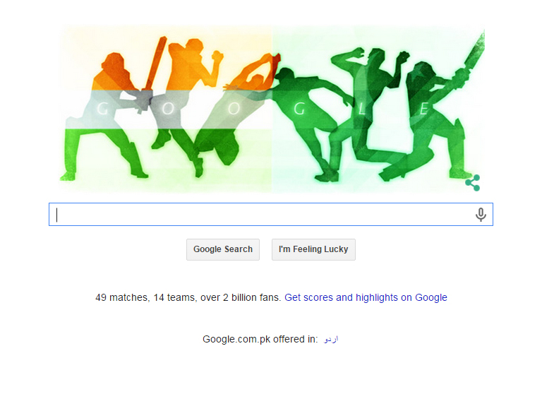 Google’s creative doodle shows silhouette of Indian and Pakistani players graced with their respective flag colours. The cricket doodle is being showcased on both Google India and Google Pakistan homepages ahead of arguably the biggest cricket battle.