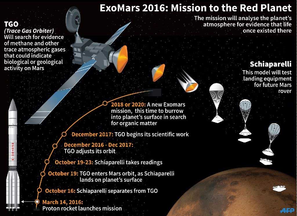 Schiaparelli will test heat shields and parachutes in preparation for a subsequent rover landing on Mars, a feat the ESA said "remains a significant challenge".