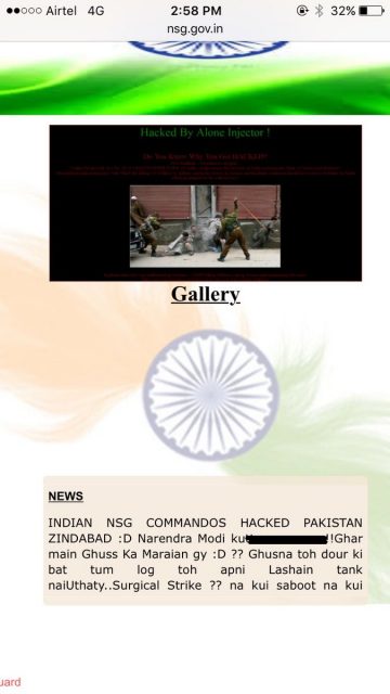 According to Indian newspaper Times of India, the hacker left a message saying that the website was defaced by ‘Alone Injector’. It also said that Indian NSG commandos had hacked Pakistan Zindabad.