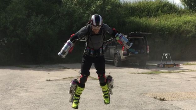 Browning told of experimenting with various numbers and arrays of essentially miniature jet engines on his limbs.