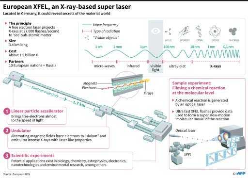 At the heart of the 1.5-billion-euro ($1.7 billion) facility is the ultrafast X-ray laser strobe light, which will allow researchers for the first time to look deep inside matter and take snapshots and "molecular movies".