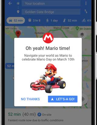 One can notice a yellow question mark icon at the bottom right of the app’s screen after entering the destination. By tapping this, the users will get a prompt to enable “Mario Time”.