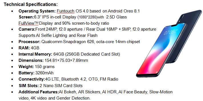 “V9 represents our understanding of consumer’s need for their mobile camera to automatically create the ‘perfect shot’ in any scenario. We are excited to introduce the V9’s AI power to young consumers in Pakistan”, said Mr. Eric Kong, CEO of Vivo Pakistan. “With AI playing a key role, we are confident that we can inspire and empower more consumers globally to express themselves by making the ‘perfect shot’ easier than ever to take, while the FullViewTM display provides consumers with the ‘perfect view’ to experience their photographic moments of self-expression”, he further added.