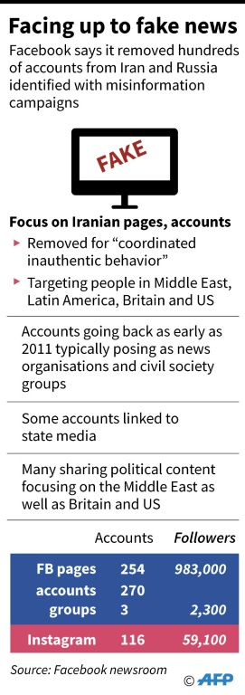 Facebook and Twitter unveiled fresh crackdowns on misinformation campaigns from Russia and Iran as analysts warned of more efforts to manipulate public debate ahead of the November US elections. Photo: AFP