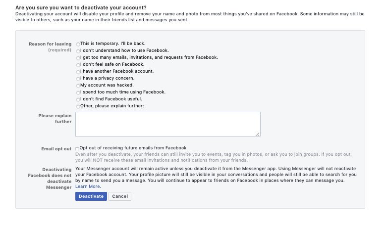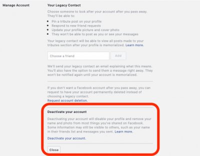 How to deactivate and reactivate your Facebook account